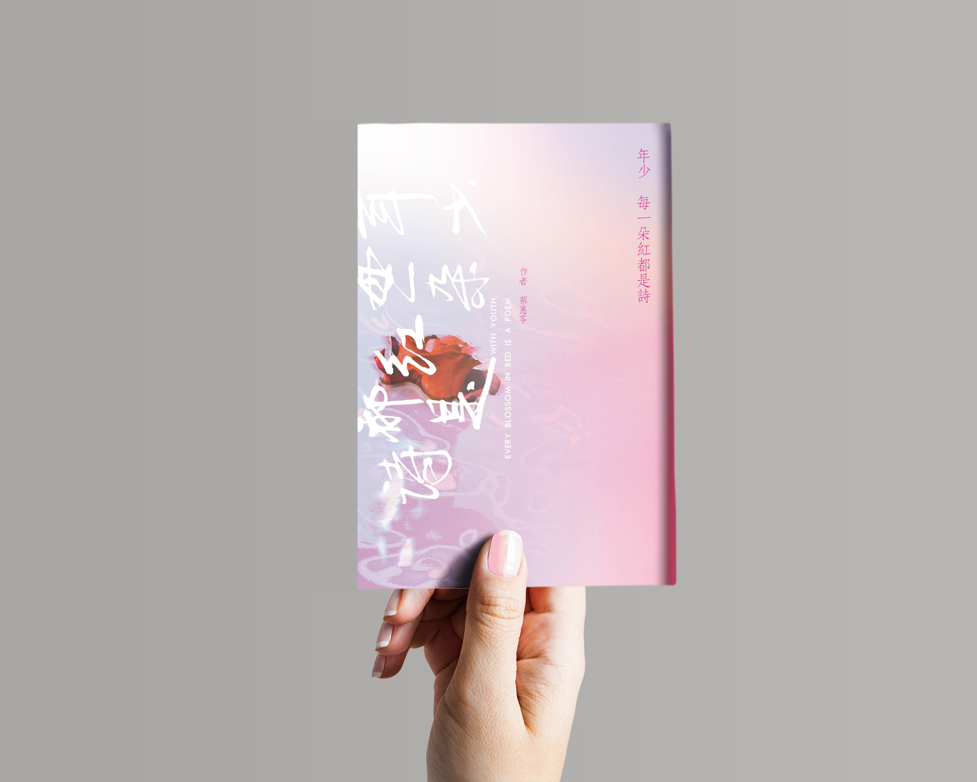 書名採用流動感強烈的白色書法字體,與背景的柔和水波紋相融合,傳達出情感的抒發與流淌。整體設計優雅而富有張力,完美體現了「每一朵紅都是詩」的浪漫主題。