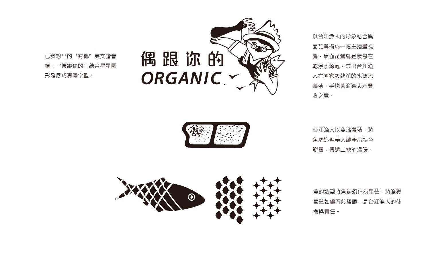 設計發想源於陽光灑落魚塭水面時,水波反射如顆顆閃爍鑽石的美景。我們將鑽石、星芒等元素幾何化,融入下半部圖案中,突顯產品的高規格與高價值。